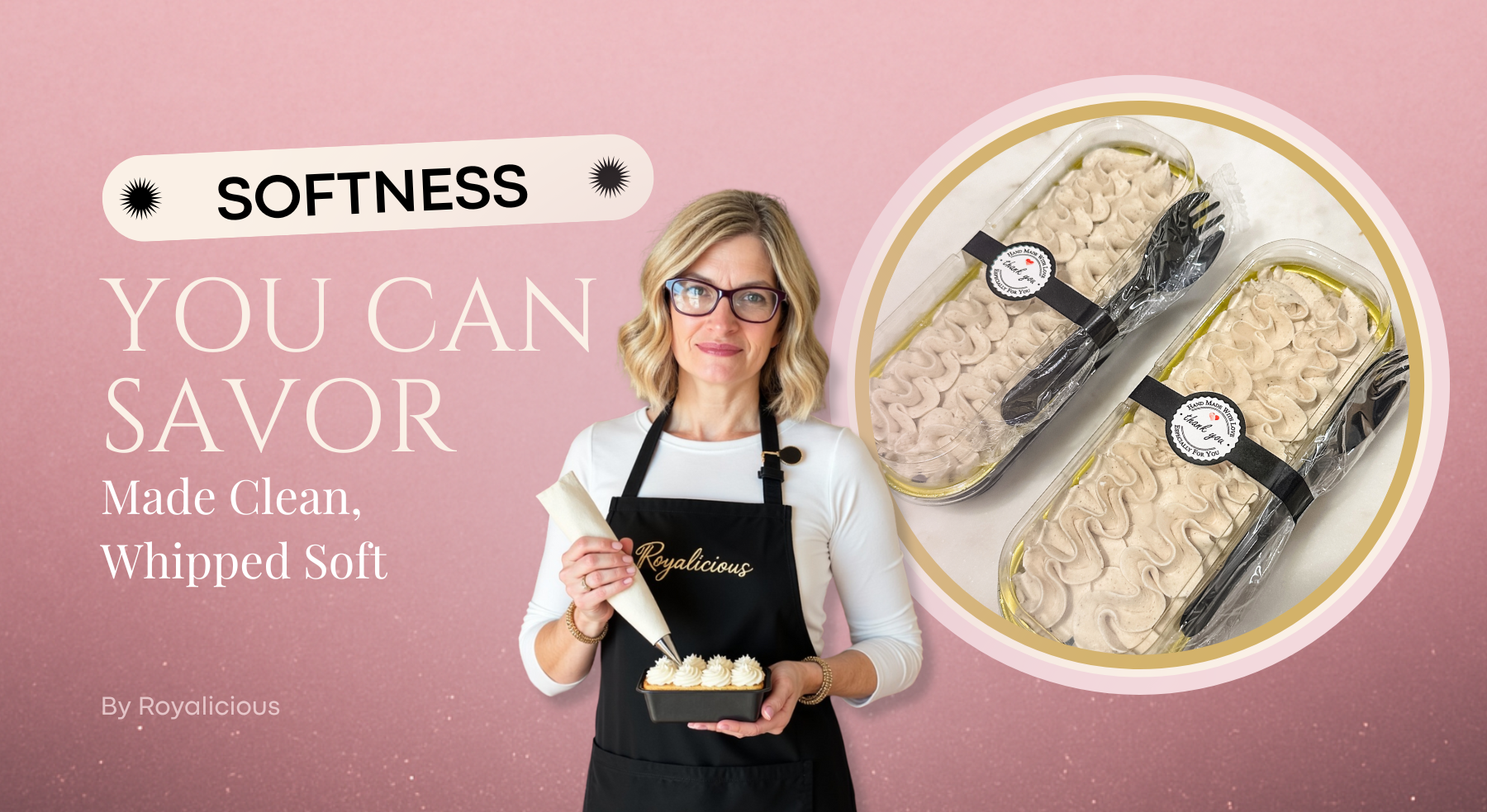 Royalicious mini cakes are an expression of Functional Luxury™—ingredients with benefits, softness with substance. Each cake is crafted slowly, in small batches, with intention at every step. Hand-piped for a cloud-soft texture, then flash-frozen the same day to protect moisture, structure, and flavor.