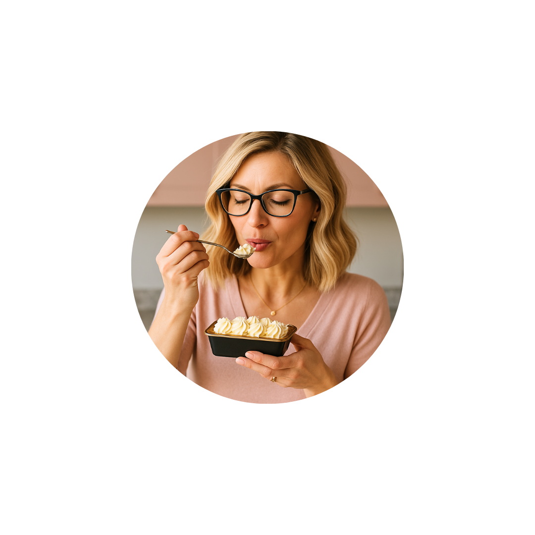 A moment she doesn’t have to share — just her, a spoon, and the kind of softness that melts the stress of the day. -