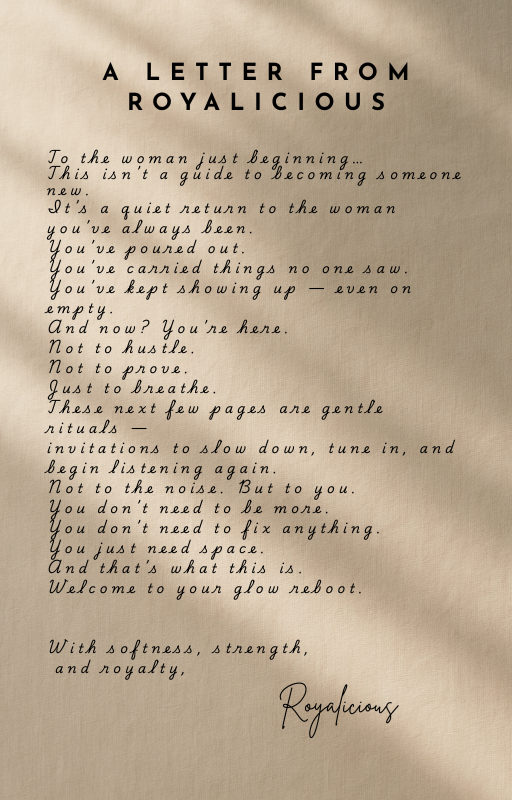 This isn’t a guide to becoming someone new. It’s a gentle return to the woman you’ve always been—The one beneath the pain. The one who’s done hiding. Before you dive into the rituals, we wanted to speak directly to the part of you that’s tired of pretending. The part that’s been performing peace while quietly bleeding. We wrote this letter as a welcome—A whisper that real healing doesn’t start with hustle. It starts with honesty. With a breath.With the courage to say,